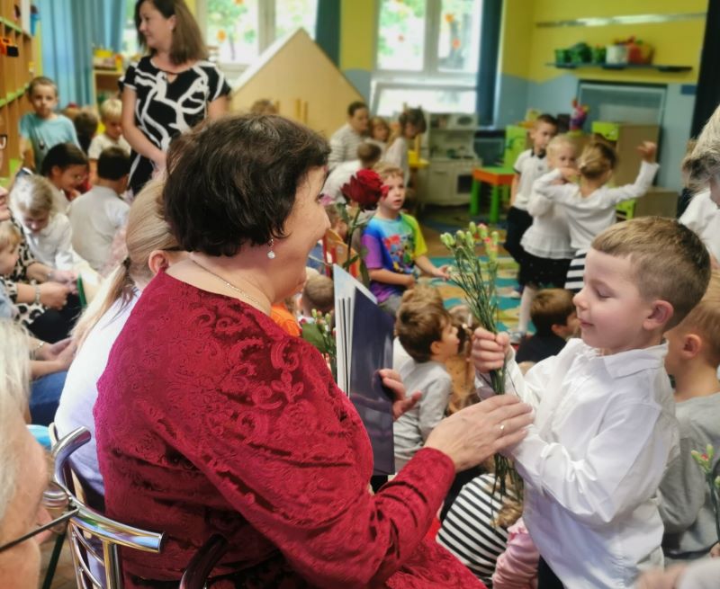 Pani Dyrektor Halina Łysikowska podziękowała dzieciom za piękne wystąpienie oraz złożyła serdeczne życzenia wszystkim pracownikom przedszkola z okazji ich święta. Atmosfera uroczystości była pełna wzruszeń, uśmiechów i ciepłych słów.